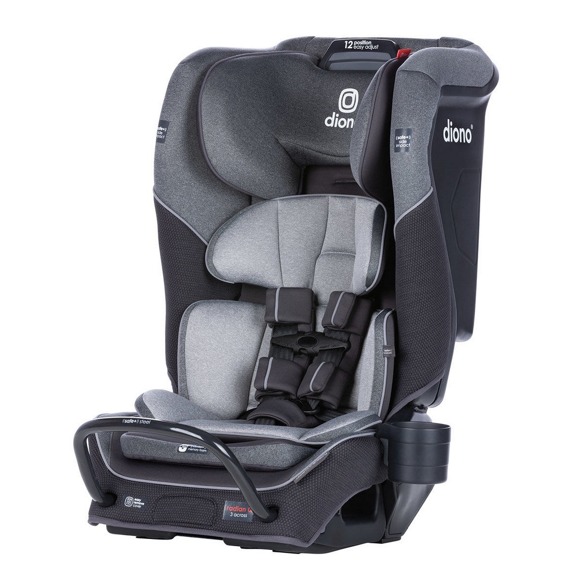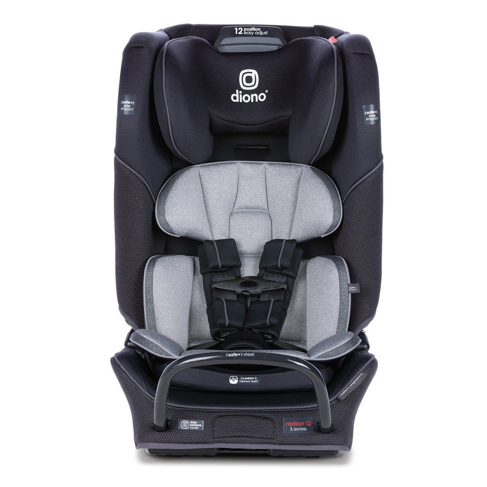 Introducing the all-new Diono Radian 3QX, this convertible car seat is specifically designed to offer maximum protection for your baby. Engineered following the latest research and technology, it features 6 layers of side impact protection that efficiently safeguards from side-impact without compromising on the 3 across fit in most midsize vehicles. All of these great features have been combined with Safe+™ engineering to easily handle the most rigorous crash tests, keeping your child safe. This updated design allows you to keep your baby safe in rear facing mode for longer, up to 50 lb (approx. 4 years old). As your baby transitions to forward facing, the Safe+™ easy adjust 12 position headrest improves child head containment and adds a 22% increase in occupancy range from the radian R series. With convenient fold and FAA approval for use on an aircraft, this convertible car seat will never disappoint you no matter where you go.