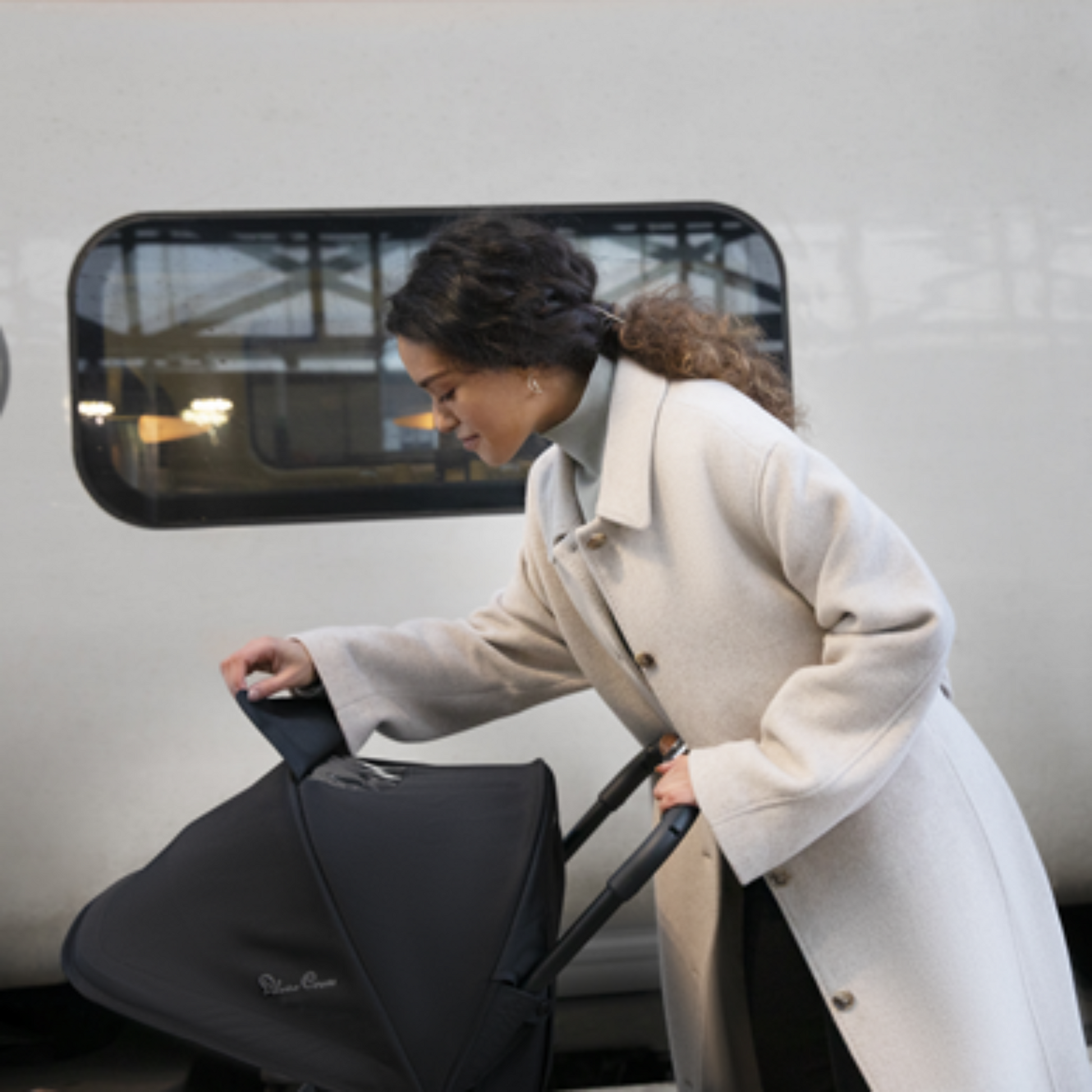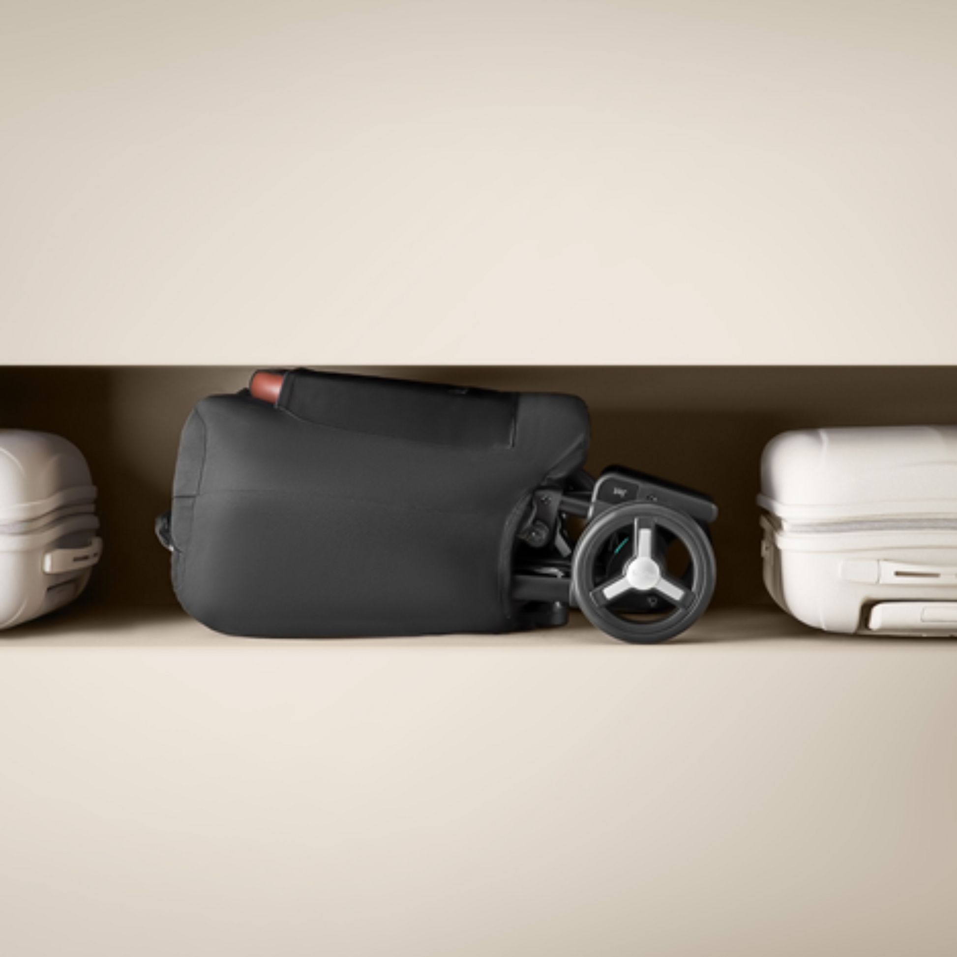 The Silver Cross Jet is the all-new, ultra-compact lightweight travel stroller that folds small enough to be stored in the overhead bin of an aircraft, and can even be wheeled like a small suitcase.